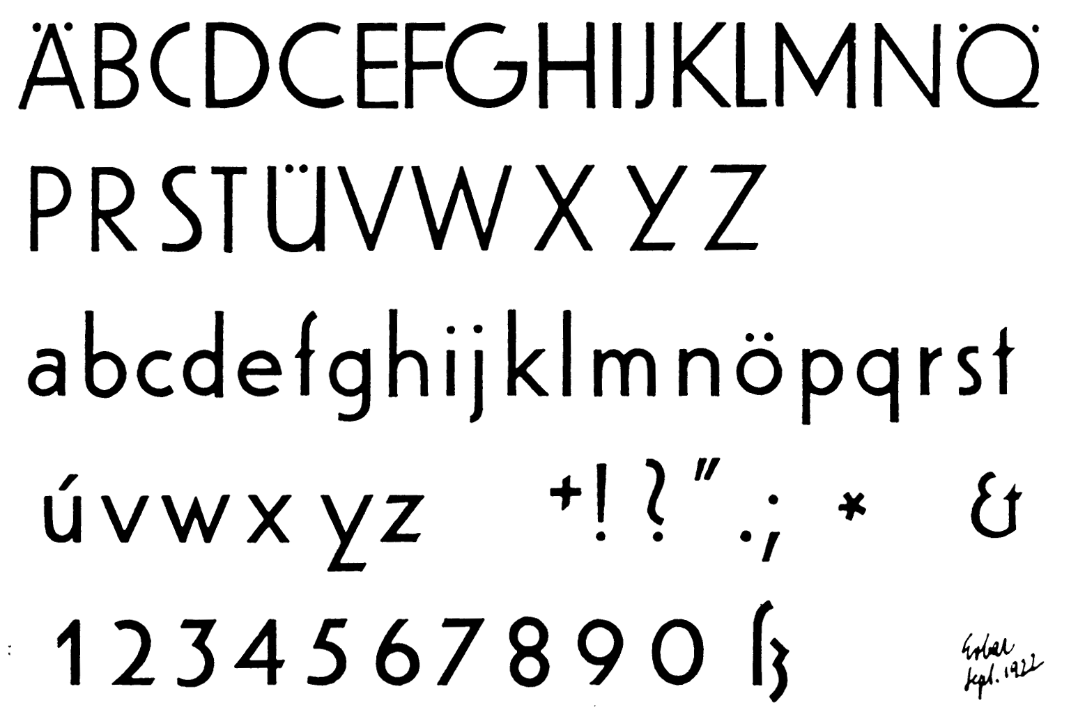 Jakob Erbar’s Erbar-Grotesk was one of the first proposals for a sans serif in the new, simplified, modern style. It is not as radically constructivist as other experiments of the time though, perhaps because Erbar already had some experience in drawing/designing typefaces as well as training in calligraphy and lettering.