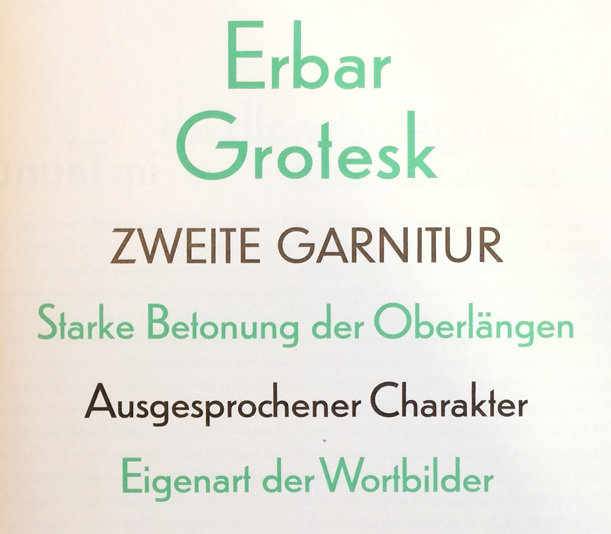 Although the first of its kind and certainly popular until the 1950s, Erbar-Grotesk ended up in the shadow of Futura, especially internationally. Perhaps also because of Tschichold’s endorsement of Futura in die neue typography. Tschichold, in his influential 1928 book, mentions Erbar and Kabel as being too much of a Künstlerschrift, feeling too designed. For him Futura was the best of the new geometric sans but he still preferred the original nameless grotesques.